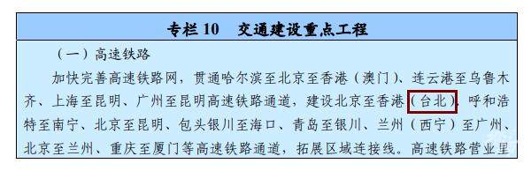 直到2016年3月,台北作为交通建设重要节点城市,出现在《十三五规划纲要》的正文当中,京台高铁线路描述更为具体。