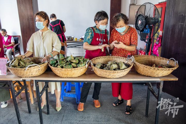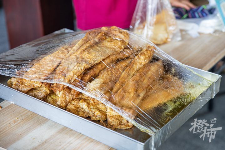 正好赶上“十五”,除了月饼之外,今天现场还在售卖素粽子、素烧鹅和卤豆腐干,素粽子分白米粽(4元/个)、红豆粽(5元/个)、蜜枣粽(5元/个)三个口味,素烧鹅10块钱一条。