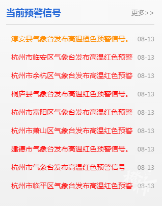截至今天下午14时30分,杭州已有多地发布了高温红色预警。