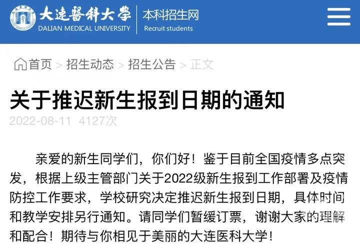 大连医科大学推迟新生报到
