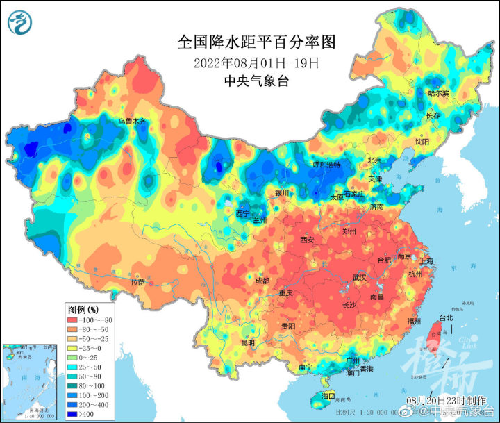 中央气象台提供的数据显示,8月以来,全国降雨分布非常不均,江南等地降雨严重偏少,大片区域降雨量仅有十几、二十毫米,大城市中南京、南昌降雨量甚至为0。相对而言,北方降雨偏多,省会城市累计降雨量排名前10里面有7个都是北方的城市,青海西宁的降雨量居然能排名第二,有177.5毫米。
