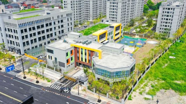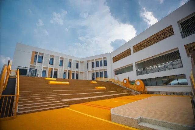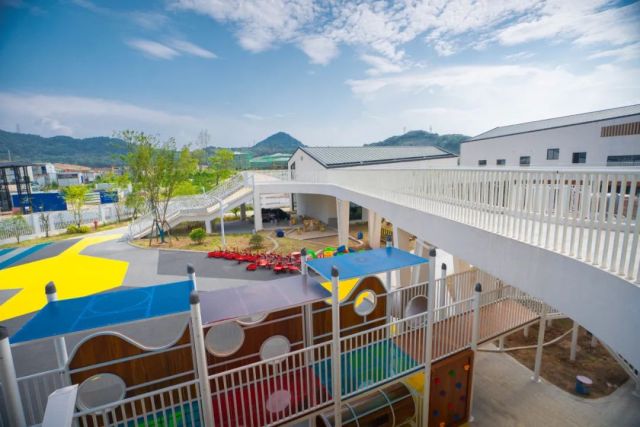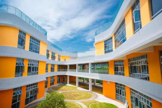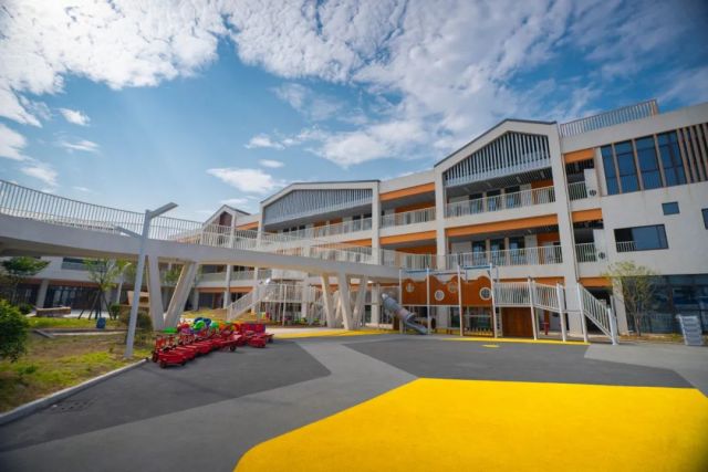 【建设理念】建筑围绕简洁、大气的工业设计元素,外立面大片的白色配以明亮的色彩点缀,入目温馨宜人,营造了纯净、舒适的氛围,整体风格活泼清新,灵动大气之中又不失童趣,为孩子们打造一片可以释放天性,融于自然的自由天地。