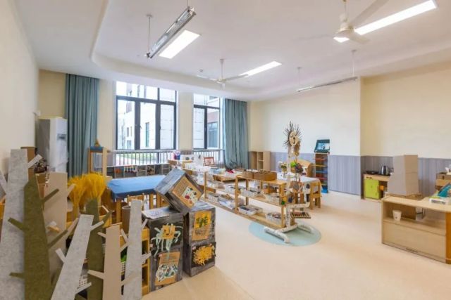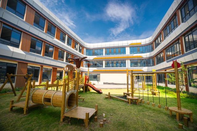 【基本情况】园区位于仓前街道吴山前村80号,总用地面积9250平方米,开设15个班级,可容纳近450名幼儿。园内配有建构室、创意美术室、生活操作室等多个专用教室,户外有个性化的玩具运动设施、沙水游乐设施、迷彩迷宫等功能性区域,构建生态、自主、有挑战的“创玩空间”户外运动环境。