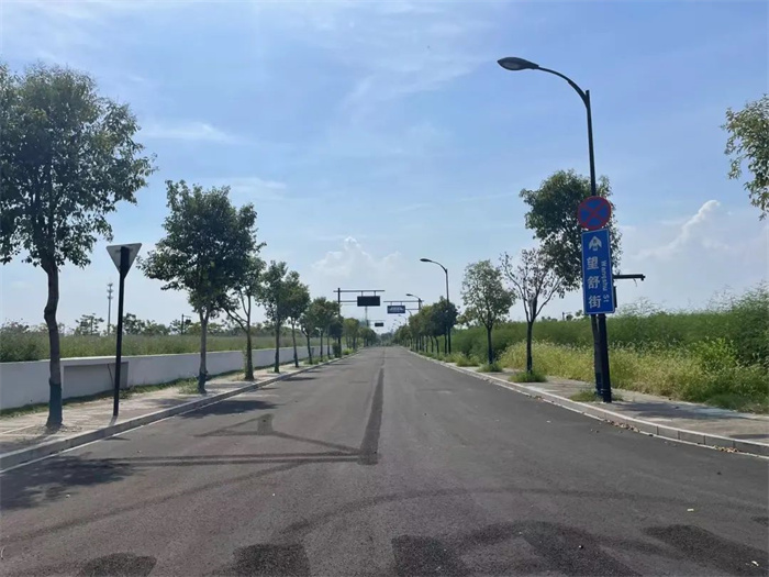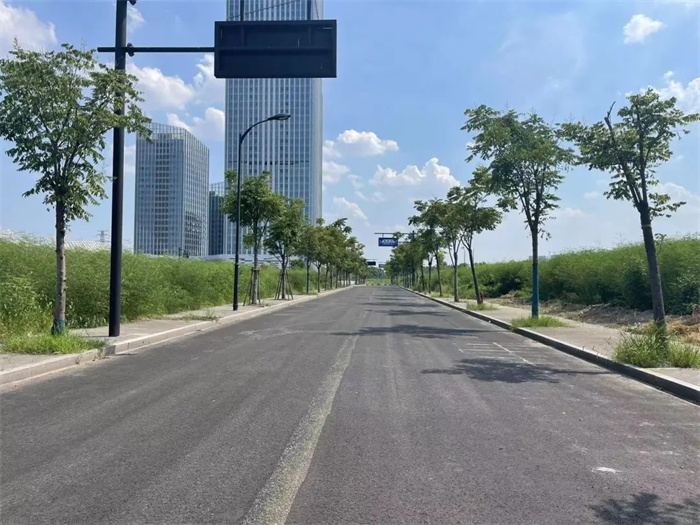 19号大街是南北向城市支路,南起之江东路,北至20号大街,道路全长约1358米,设计速度30千米/小时。改造内容包括车行道水泥砼路面白改黑、人行道翻挖新建、平侧石全部更换。
