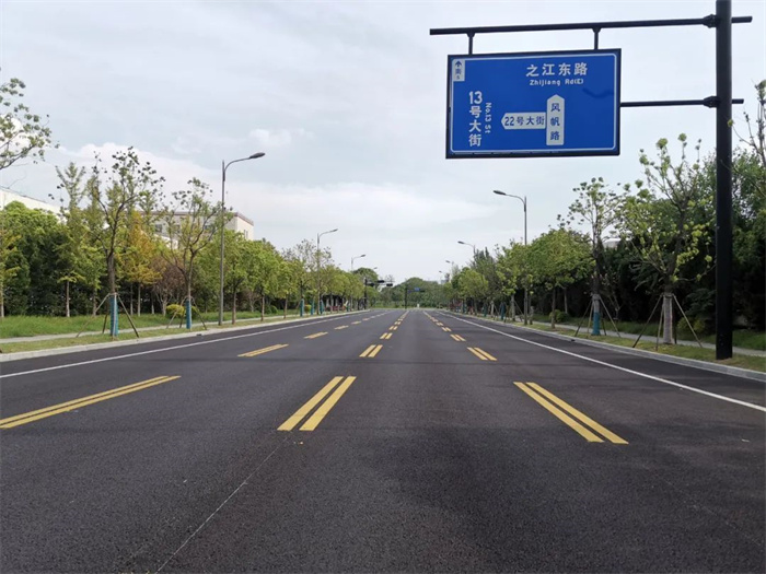 11号大街为南北向城市主干路,南起之江东路,北至2号大街,道路全长5083米,设计速度50千米/小时。改造内容包括机动车道白改黑、机动车道沥青铣刨重铺、非机动车道沥青铣刨重铺、人行道铺装翻新等。