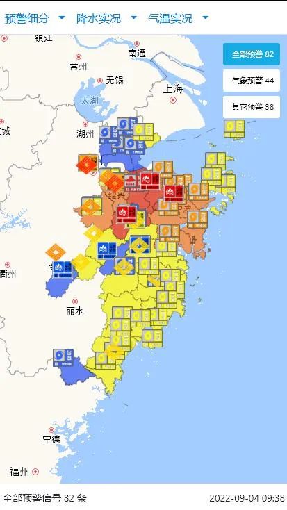 浙江已发布82条预警信号