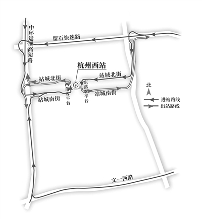 从城西、西溪和未来科技城一带开车出发的市民,可以沿文一西路向西行驶。走文一西路去西站的车辆,可以转入中环运溪高架,再驶入进站匝道,从西落客平台进站。