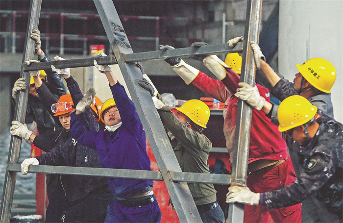 2022年春节,来自湖北嘉鱼的装配工陈炎章决定留杭过年。刺骨的寒风呼呼地吹着,站台上,他和工友们忙碌的身影在电焊的火光中若隐若现。