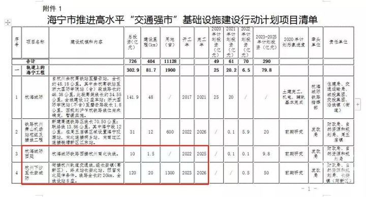 杭海线:开展西延工作,计划2025年完工