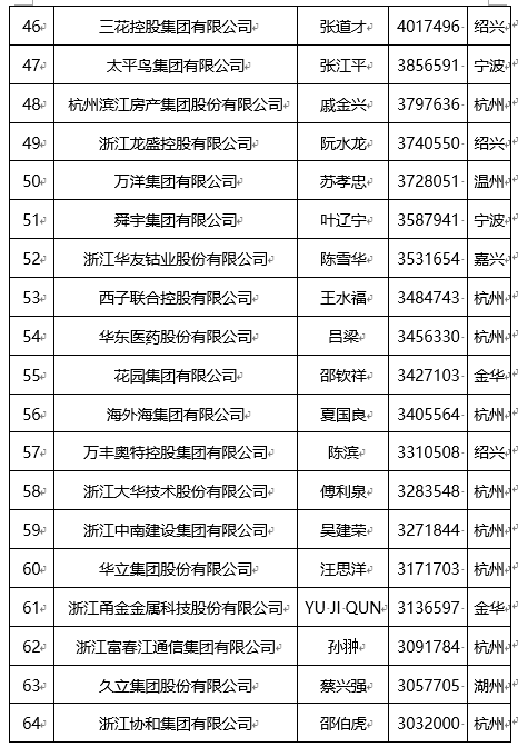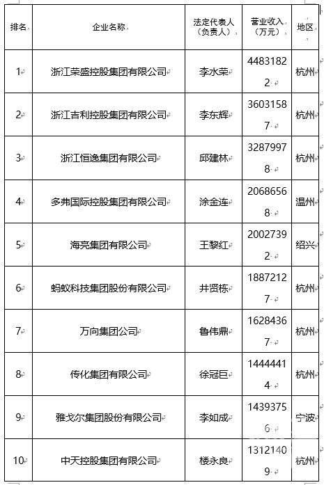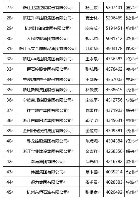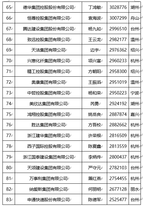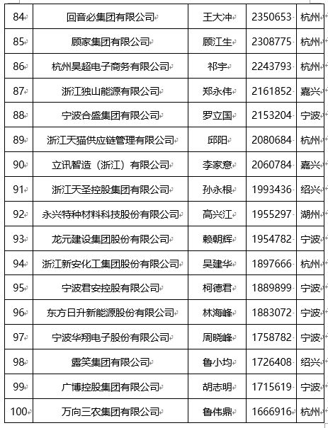 “2022浙江省民营企业100强”名单
