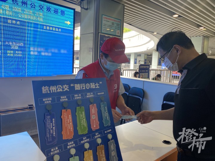 今天(9月16日)下午,“随行小贴士”已提前开始服务,来自苏州的姚大伯刚下火车,路过服务台,就拿走了一张“随行小贴士”,他说:“杭州的服务真是很贴心,这下又被杭州暖到了,我要去滨江的儿童医院,手机上也不太会查,就想着来问一问驾驶员,现在不用问了,我跟着上面的路线走就可以,太方便了。”