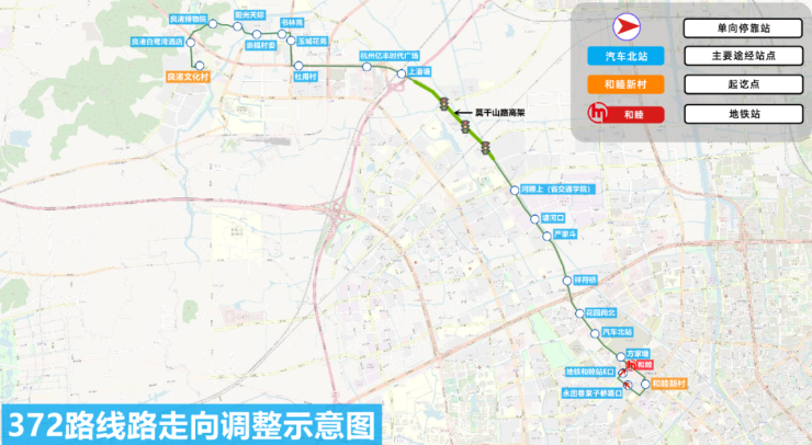 372路原本从上潘塘到河塍上(省交通学院)大约需要22分钟,如今直接跨越莫干山路高架,可在高峰时段节省近10分钟。