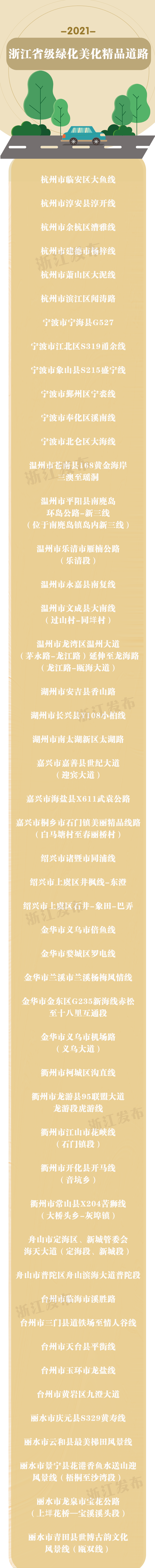 近日,浙江省“三改一拆”行动领导小组办公室公布2021年省级绿化美化精品道路及特色精品道路评选结果。此次,全省共评选出49条省级绿化美化精品道路、20条省级特色精品道路。
