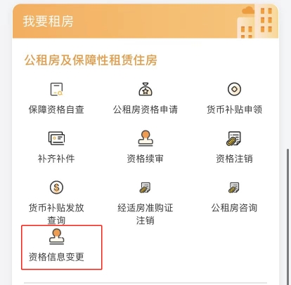 第二步:点击“公租房及保障性租赁住房”的子栏目“资格信息变更”,进入业务界面。