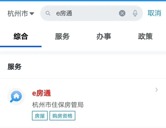 第一步:打开“浙里办”APP搜索“e房通”进入小程序。