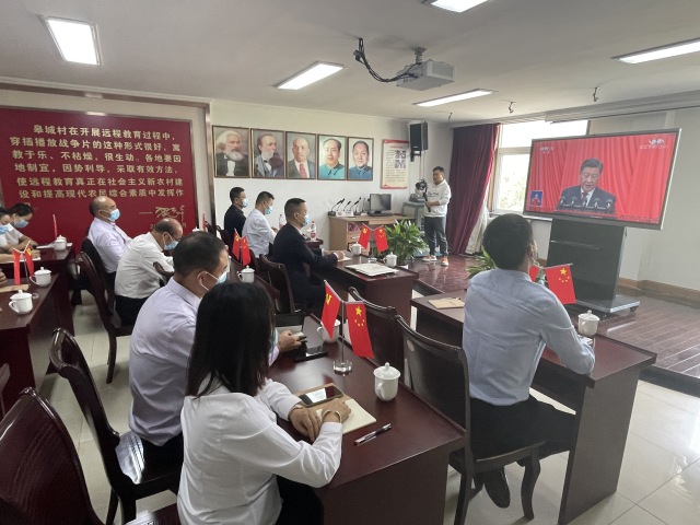 今天上午,上城区丁兰街道皋城村广大党员、干部、群众和上城区机关党员代表、丁兰街道联村干部,齐聚一堂,认真收听收看党的二十大开幕直播。87岁的皋城村老书记杨金焱一家四代也在家里收看直播。
