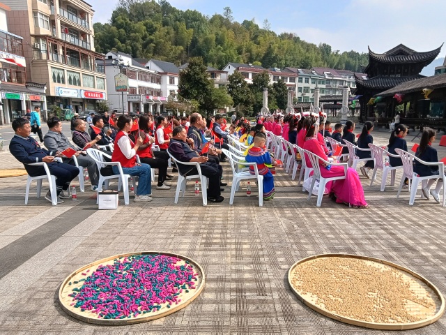 今天,在桐庐县莪山畲族乡民族文化广场上,莪山乡干部,莪山各村干部与畲族人民一起收看党的二十大开幕盛况。