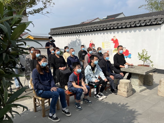 在临平区塘栖镇丁山河幸福的院子,15名非遗手艺人聚集在一起,共同收看党的二十大开幕,聆听习近平总书记重要讲话。
