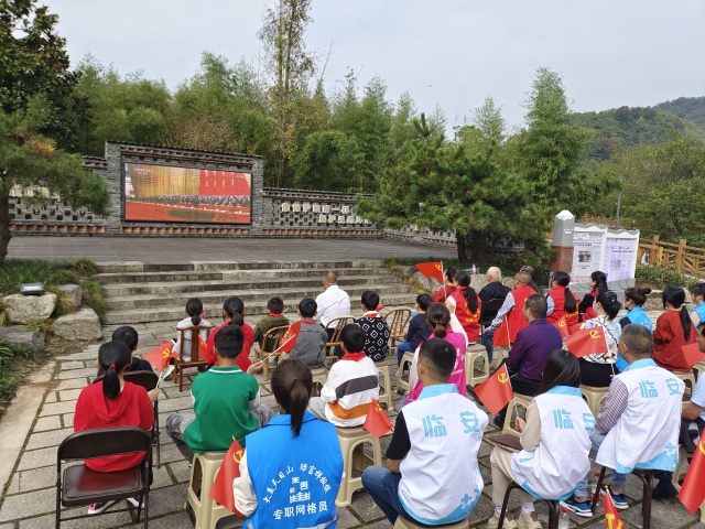 今天一早,在时任浙江省委书记习近平考察过的临安区天目山镇,全体机关干部,早早守候在大屏前,集体收看党的二十大开幕。