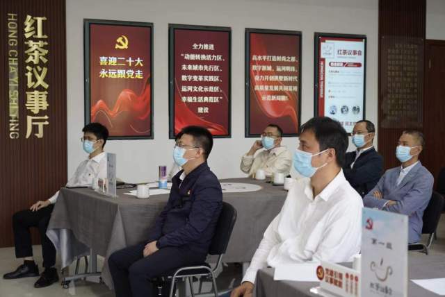 今天上午,在拱墅区小河街道大浒路社区红茶议事厅内,街道全体班子领导和机关党员代表按照议事厅布局早早就座,组织收看党的二十大开幕盛况。
