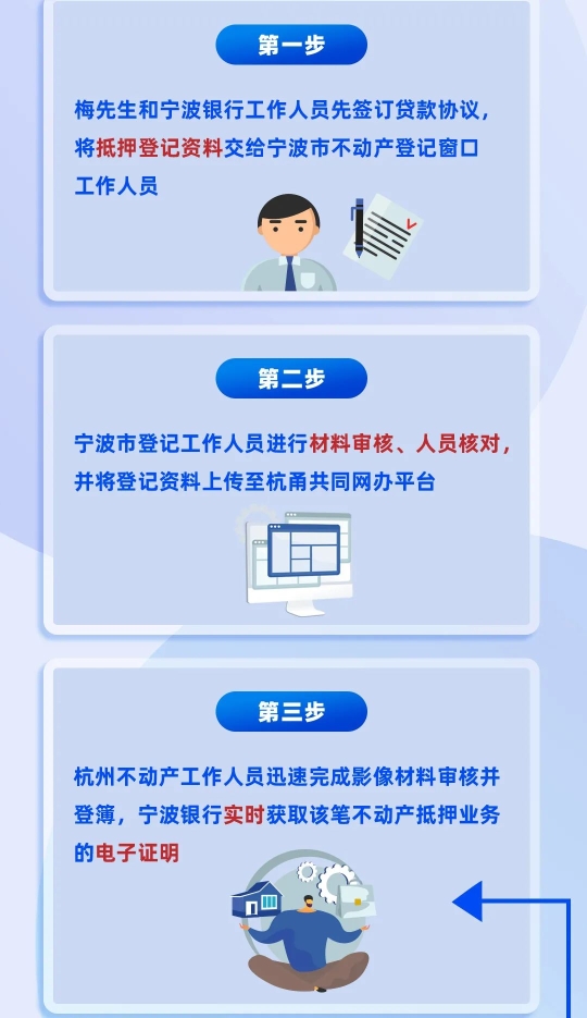杭甬两地去年携手实现登记信息查询、不动产抵押登记注销及设立3个事项双城通办。通过以下图片再来了解下: