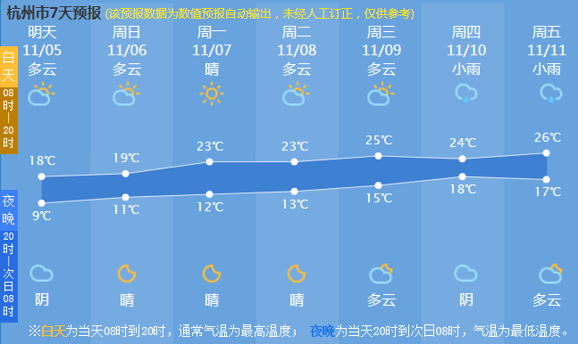 明天是周一(7日),我们将迎来立冬节气。但杭城气温会一天比一天高!最高气温今天19~21℃,其余时间22~26℃,12日甚至可能达到29℃,不像冬天,不像秋天,反而像初夏!最低气温9日前9~13℃,其余时间14~17℃。