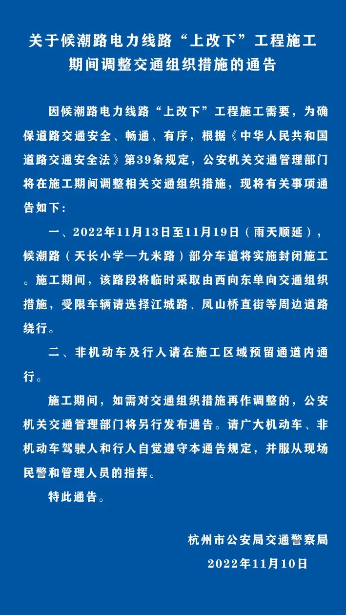 注意!杭州有多条道路交通组织措施调整!