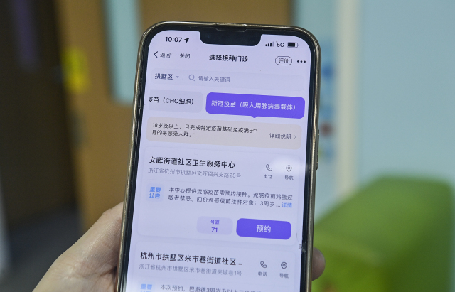 记者了解到,目前首批共有90个吸入式新冠疫苗免费接种名额,前期已有19人预约。“目前我们分时段接种,主要在下午的门诊时间进行。”杜羽佳介绍,市民可以登录浙里办APP,搜索“预防接种”,点击“新冠疫苗”,就可以选择预约吸入式新冠疫苗以及预约接种的时间和预防接种门诊。