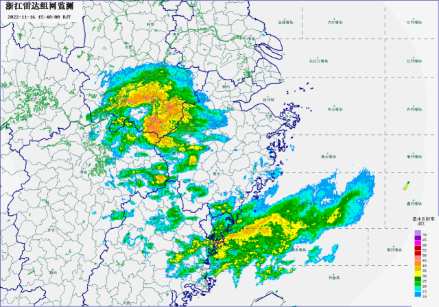 由于这次升温是南支槽前的西南暖湿气流造成的,回暖的同时还会伴随着连续的阴雨天气。预计今天开始直到19日都会有雨出现,其中今天夜里全市阴有小到中雨、局部有大雨。从今天下午的雷达回波图上可以看到,一大片降雨云团正在向杭州靠近。