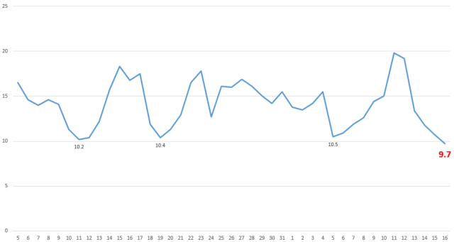 主城区10月5日至11月16日日最低气温变化图
