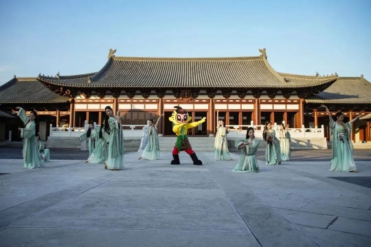 800多年前的德寿宫是南宋规制最高的建筑之一,它展示了南宋的生活方式,展示了南宋的政治、文化、艺术、生活美学。“乐乐”和浙江音乐学院附属音乐学校的同学们在德寿宫重华殿前翩翩起舞,展示宋韵之美。