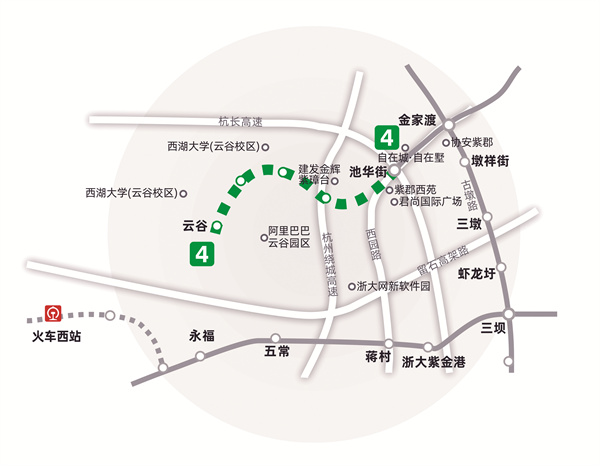 4号线西延段范围内,西湖大学跟云谷这两个区域,目前已有大量科研人员、学校工作人员以及多个公司入驻,属于迫切需要公共交通服务的区块——这也体现了地铁建设的宗旨是优先服务人口较多的、有项目投入投产的区域。