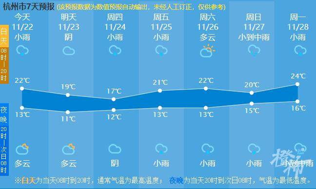 浙江天气说,本周最低气温维持1字头(今晨最低气温全省大部15~18℃),最高2字头气温也是一抓一大把,而常年同期(11月21日-27日)我省平均气温仅12.3℃。