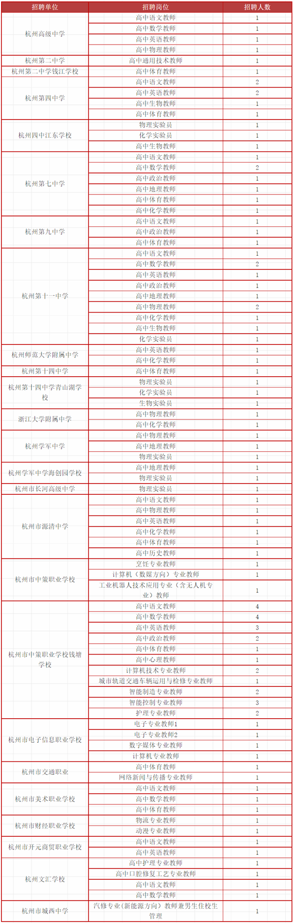 杭州市教育局所属杭州高级中学等25家财政补助事业单位,公开招聘事业编制工作人员102名,参加本次招聘被聘用的人员均列入事业编制。