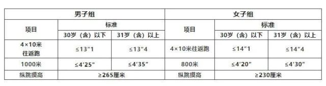 体能测试成绩采用达标制,任意一项不达标,视为不合格,不得进入下一招聘环节。