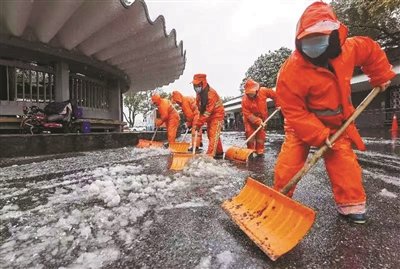 环卫工人第一时间投入防雪抗冻工作