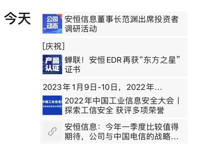 记者查看安恒信息官方微信号,今天上午9:47分发布了题为《安恒信息董事长范渊出席投资者调研》活动文章。