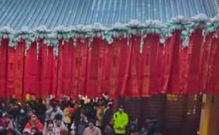 虽然今天早上气温在0℃以下,但丝毫阻挡不了大家迎财神的热情。天还没亮就已经有不少人上山“接财神”了。