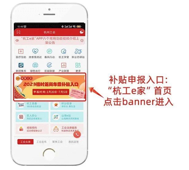 下载安装并注册登录“杭工e家”APP(已注册用户可直接打开APP),点击首页轮播图进行申请。