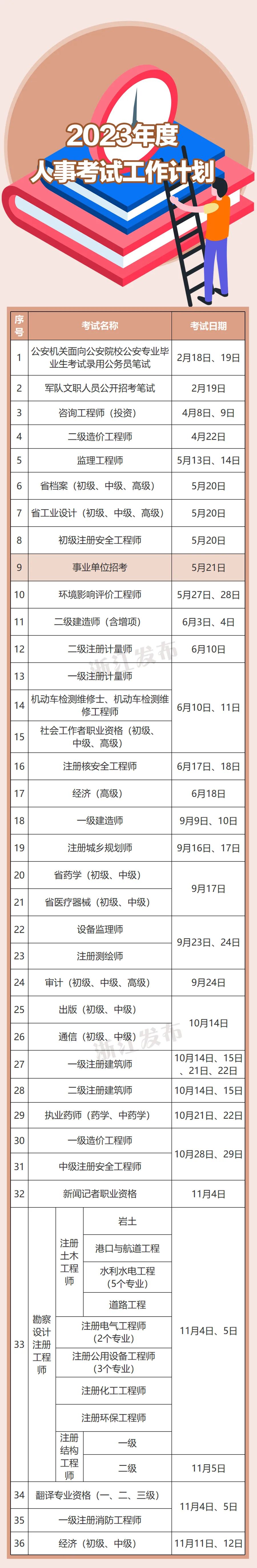 浙江省人事考试院发布《关于提供2023年度事业单位公开招聘人员考试服务的通知》,明确了2023年浙江事业单位考试时间和科目、具体工作事项等。按照自愿申请、分级负责原则,计划在2023年度提供1次事业单位公开招聘人员考试服务。