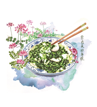 周作人写作“草紫”,但民间更多是叫“草籽”,浙江很多地方最日常的一种吃法是草籽炒年糕。不过,紫云英也分为有毒和无毒两种,若少量长期食用会慢性中毒,大量食用则会导致急性中毒。所以,如果不会分,还是不要轻易尝试了。