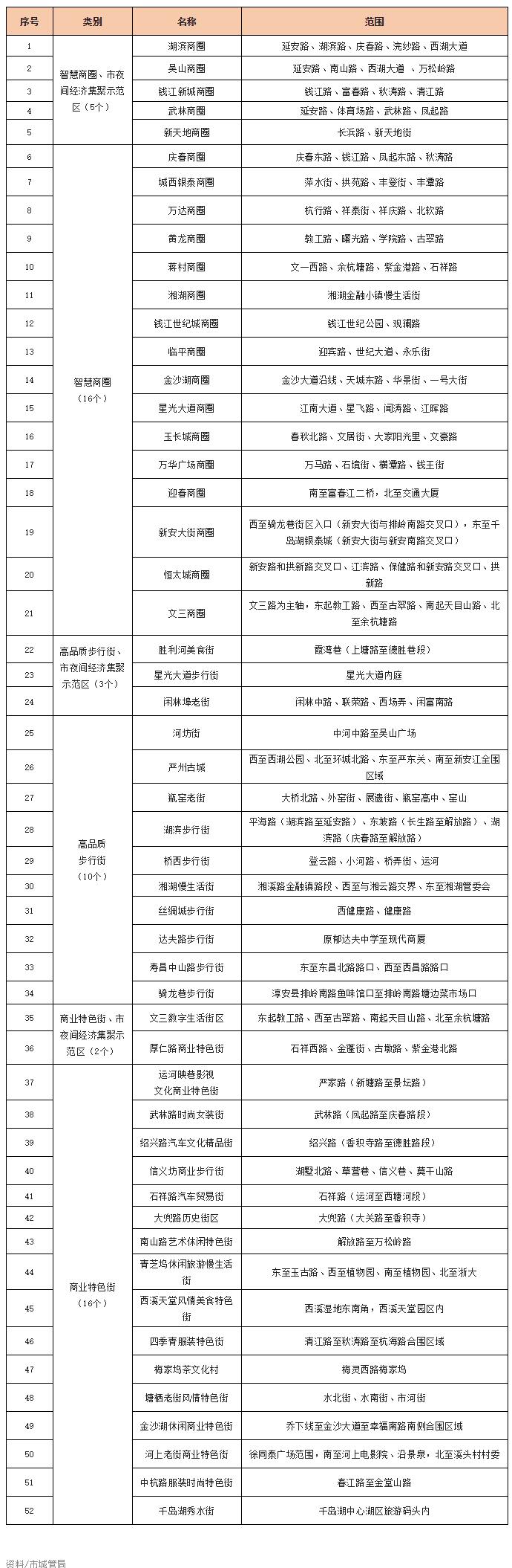 市级及以上智慧商圈、高品质步行街、商业街色街、市夜间经济集聚示范区清单