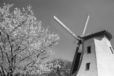 大风车草坪上的樱花开了