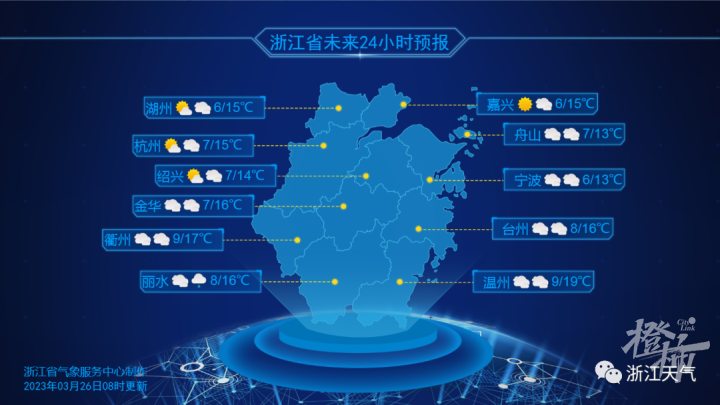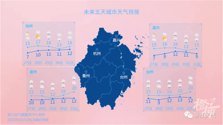 好在白天有阳光加持,气温也开始抬头。预计白天最高温度浙中南和东南沿海地区17-19℃,其它地区15-17℃。