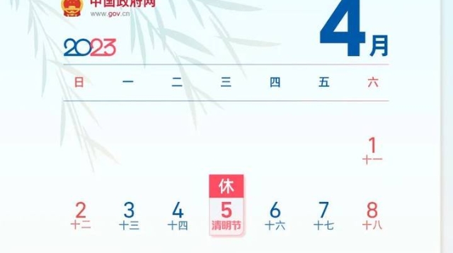 下周上班时间有变:4月5日(周三)是清明节,放假1天,不调休。