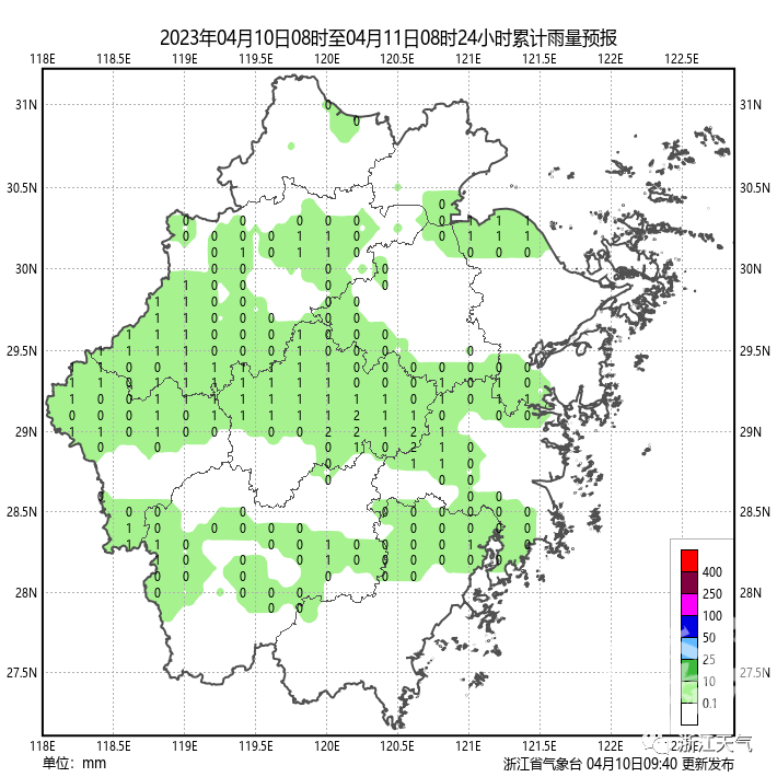 后天(周三)浙北天气转好,其它地区局部会下点小雨。