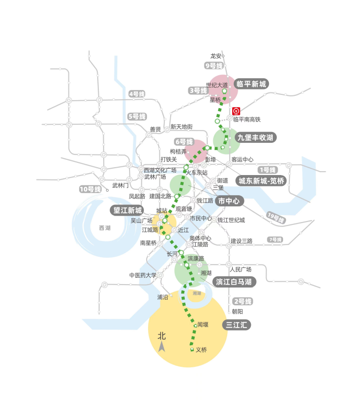 该线路可以串联起临平核心区西翼、丰收湖、白马湖、三江汇这些板块,还将填补闻堰、义桥、丰收湖等板块的地铁空白。