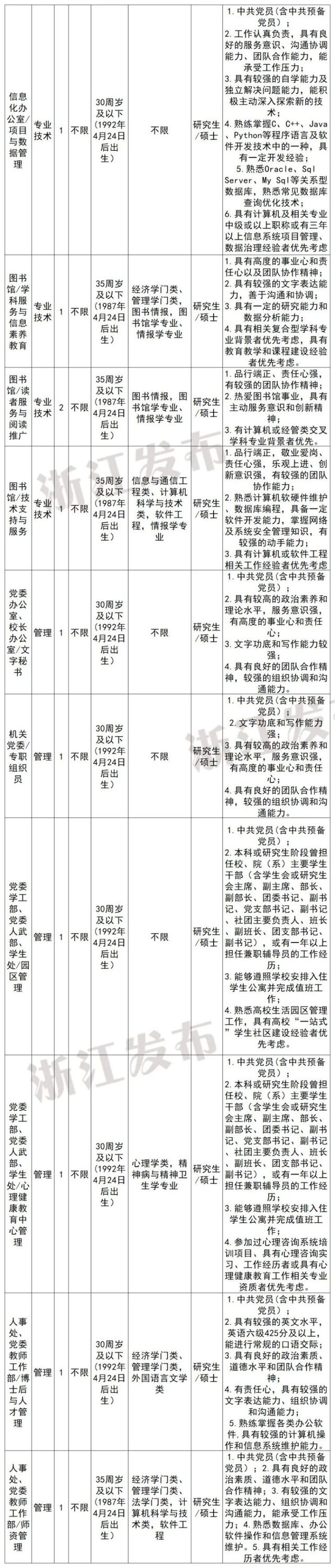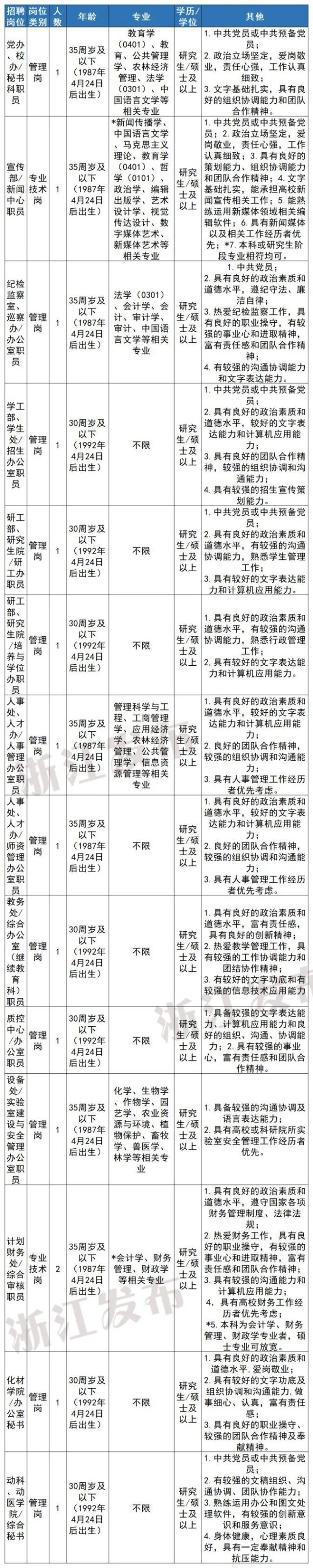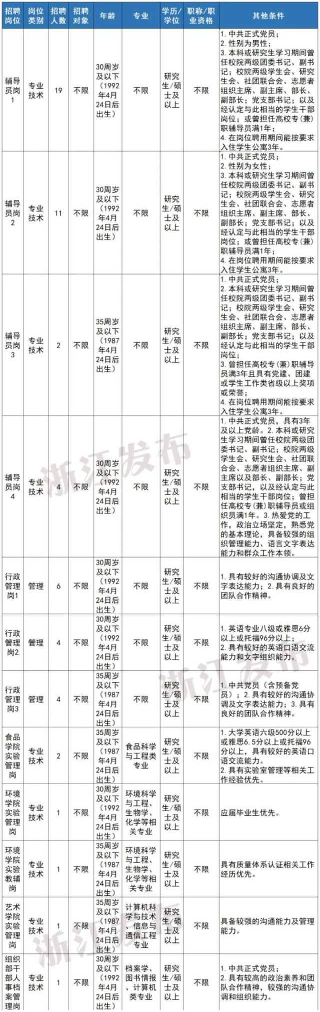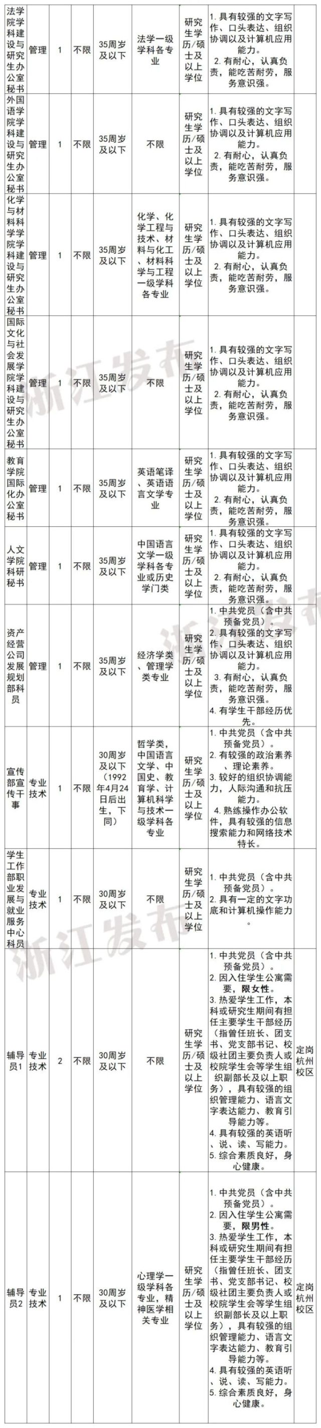 注:学历学位条件“研究生/硕士”表示要求具备研究生学历并取得硕士以上学位,而不是符合其一即可。