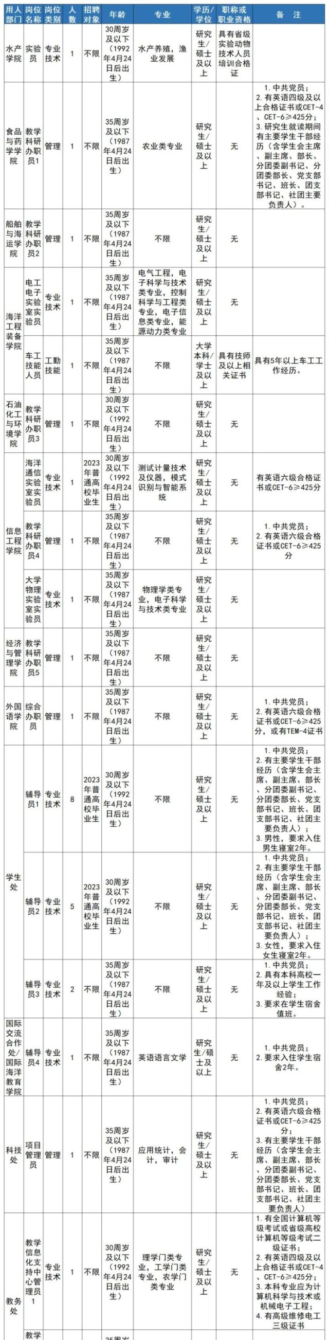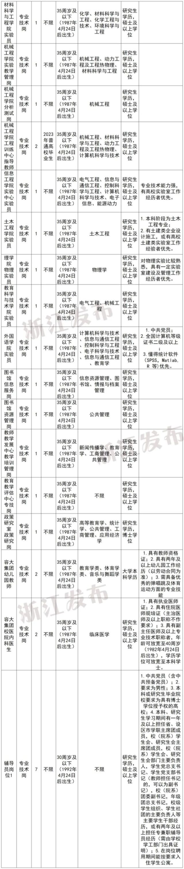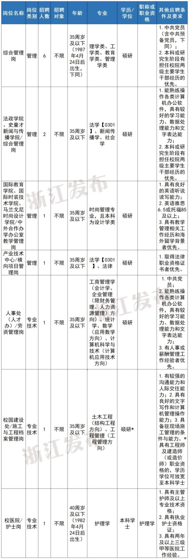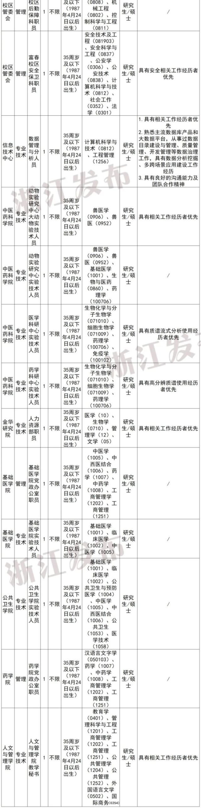 注:学历学位条件“研究生/硕士”表示要求具备研究生学历并取得硕士以上学位,而不是符合其一即可。