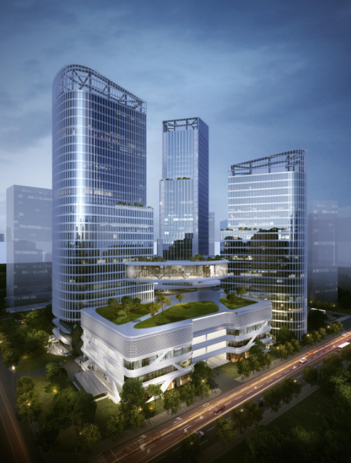 该项目是集商业、商务、公共交通场站于一体的综合体建筑,由两栋超高层塔楼、一栋高层塔楼、商业裙房以及一个公交场站组成。